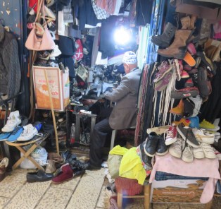 We did and the shoe was heeled. He’d added a bit of rubber to the other one too, to make them almost the same height. The work was functional rather than elegant, and looked robust. “How much?” I said. He indicated that it was up to me. I made the mistake of saying, “No, no, tell me how much I owe you,” to which he replied, “Fifty shekels.” That’s about US$14. My eyebrows lifted, my eyes widened and my blood ran cold, but what could I do?