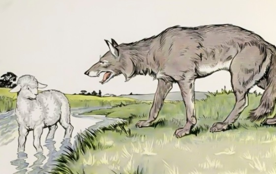 A wolf is drinking at a brook and sees a lamb paddling a little way off. Wanting a reason to eat the lamb the wolf says, “How dare you stir up the mud while I’m drinking?!”