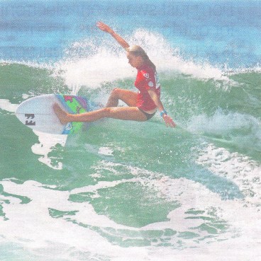 The surfer is Macy Callaghan, who first hopped on a board when she was 3.  She is shown winning the World Surf League Qualifying Series at Boomerang Beach. The picture was taken by Jonny Weeks.